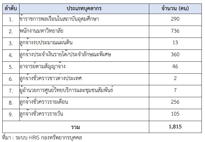 ผลการดำเนินงาน SDG10.5.1 1. Campus population (จำนวนประชากรในมหาวิทยาลัย) ในปีงบประมาณ พ.ศ. 2567 มหาวิทยาลัยสุโขทัยธรรมาธิราช มีจำนวนประชากรในมหาวิทยาลัย ได้แก่ พนักงาน FTE เต็มเวลาเทียบเท่า จำนวนทั้งหมด 1,815 คน โดยมีรายละเอียดดังนี้ 2. จำนวนบุคลากรพิการ มหาวิทยาลัยสุโขทัยธรรมาธิราช ปีงบประมาณ 2567 มหาวิทยาลัยสุโขทัยธรรมาธิราช มีจำนวนบุคลากรพิการ มหาวิทยาลัยสุโขทัยธรรมาธิราช ประจำปีงบประมาณ พ.ศ. 2567 จำนวน 2 คน ซึ่งสังกัดสำนักบริการการศึกษา ทั้งนี้ กองทรัพยากรบุคคล มหาวิทยาลัยสุโขทัยธรรมาธิราช มีการรายงานผลการจ้างคนพิการ ในหน่วยงานของรัฐ ต่อกรมส่งเสริมและพัฒนาคุณภาพชีวิตคนพิการ เป็นประจำทุกปี