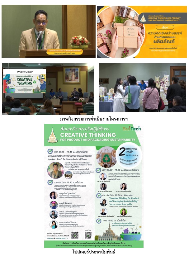 1. โครงการสัมมนาวิชาการเชิงปฏิบัติการเรื่อง Creative Thinking for Product and Packaging Innovation