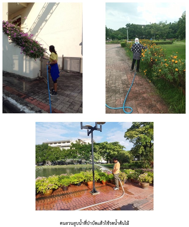 ในส่วนของต้นไม้กระถาง กระบะ และสวนหย่อมบนอาคาร สามารถใช้น้ำประปาของมหาวิทยาลัยฯ มารดน้ำต้นไม้ได้ ได้แก่
